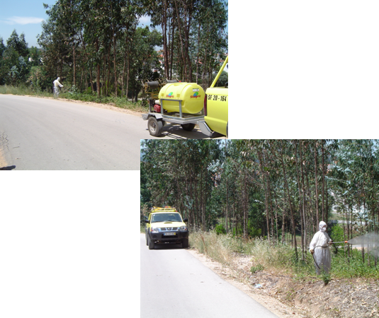 A aplicação de herbicida é efectuada com moto-pulverizador. Deverá ser efectuado em dias quentes, secos e sem vento de modo a produzir um resultado mais eficaz. O produto químico a usar trata-se de um herbicida de acção foliar, sistémico total pós-emergente, não residual e de impacto ambiental reduzido sem classificação de perigosidade. A FLOPEN tem um técnico credenciado pelo Ministério da Agricultura e Pescas, para aplicação de fitofármacos.